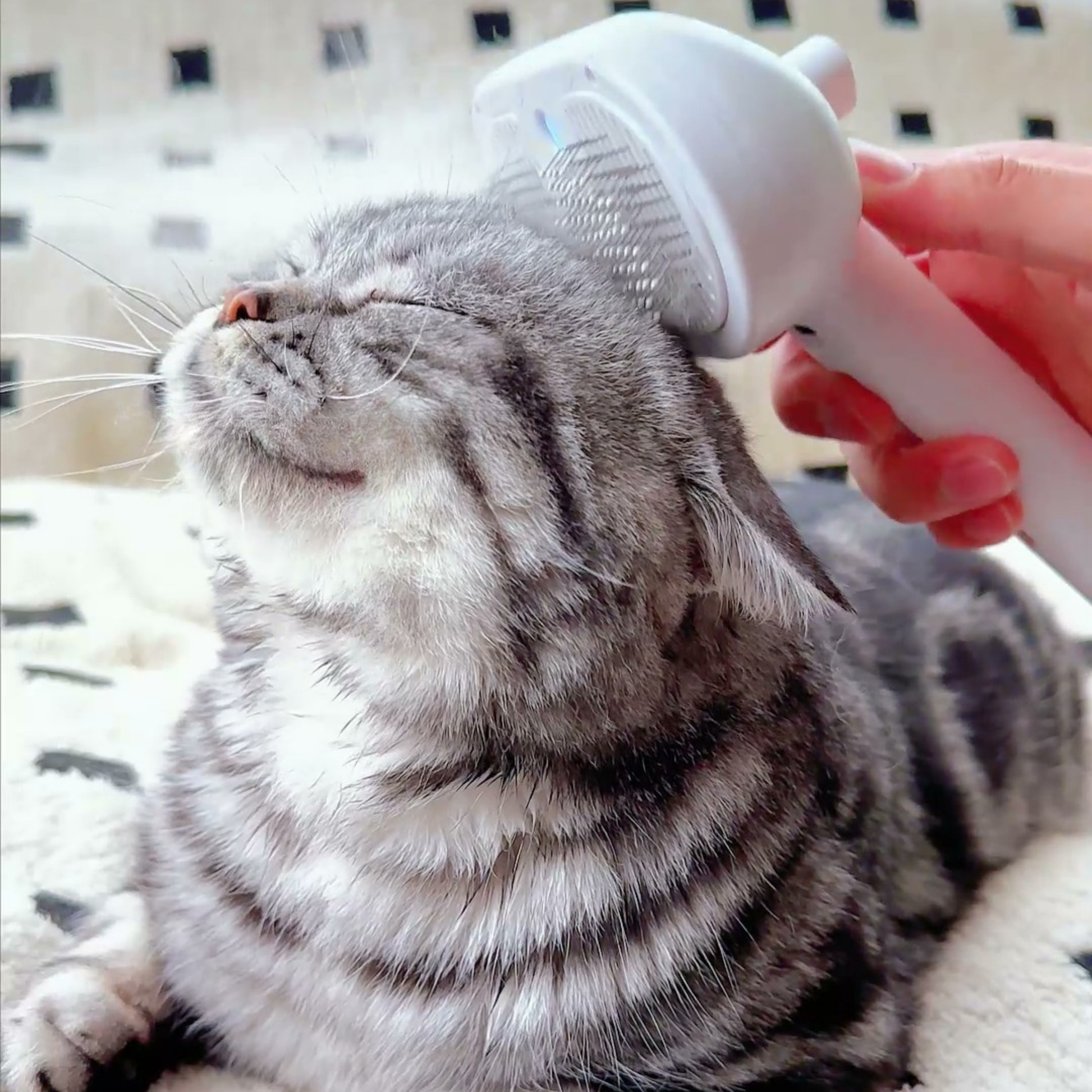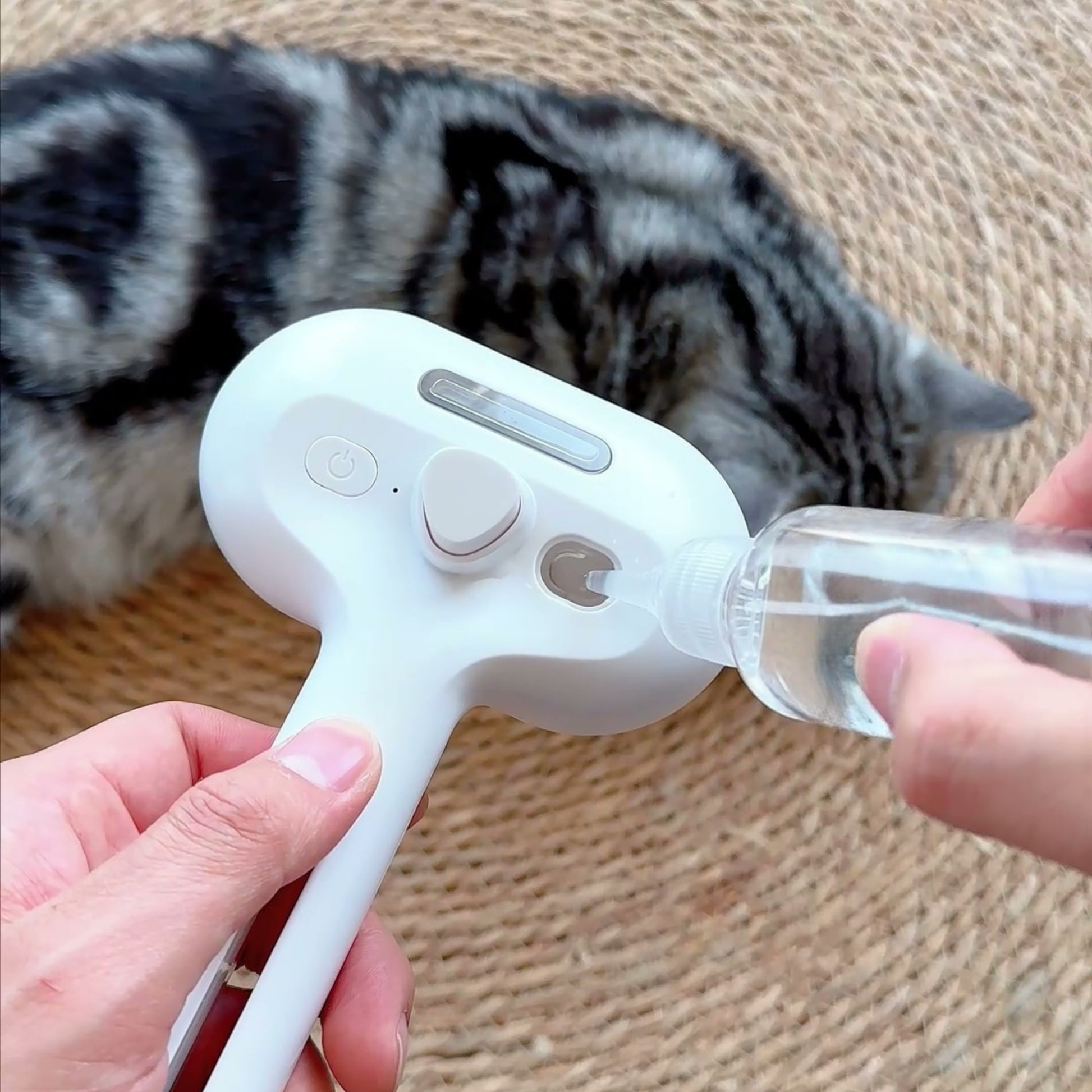 No batteries, no cords — just charge it with a USB-C cable (included), fill it up, and brush your kitty with ease and comfort! It’s perfect for both long-haired and short-haired breeds, and comes with a bonus mini bottle so you can easily refill on the go. Designed to be gentle on your cat’s skin and tough on shedding, this brush is a must-have for every pet parent who wants grooming to be quick, easy, and kind.