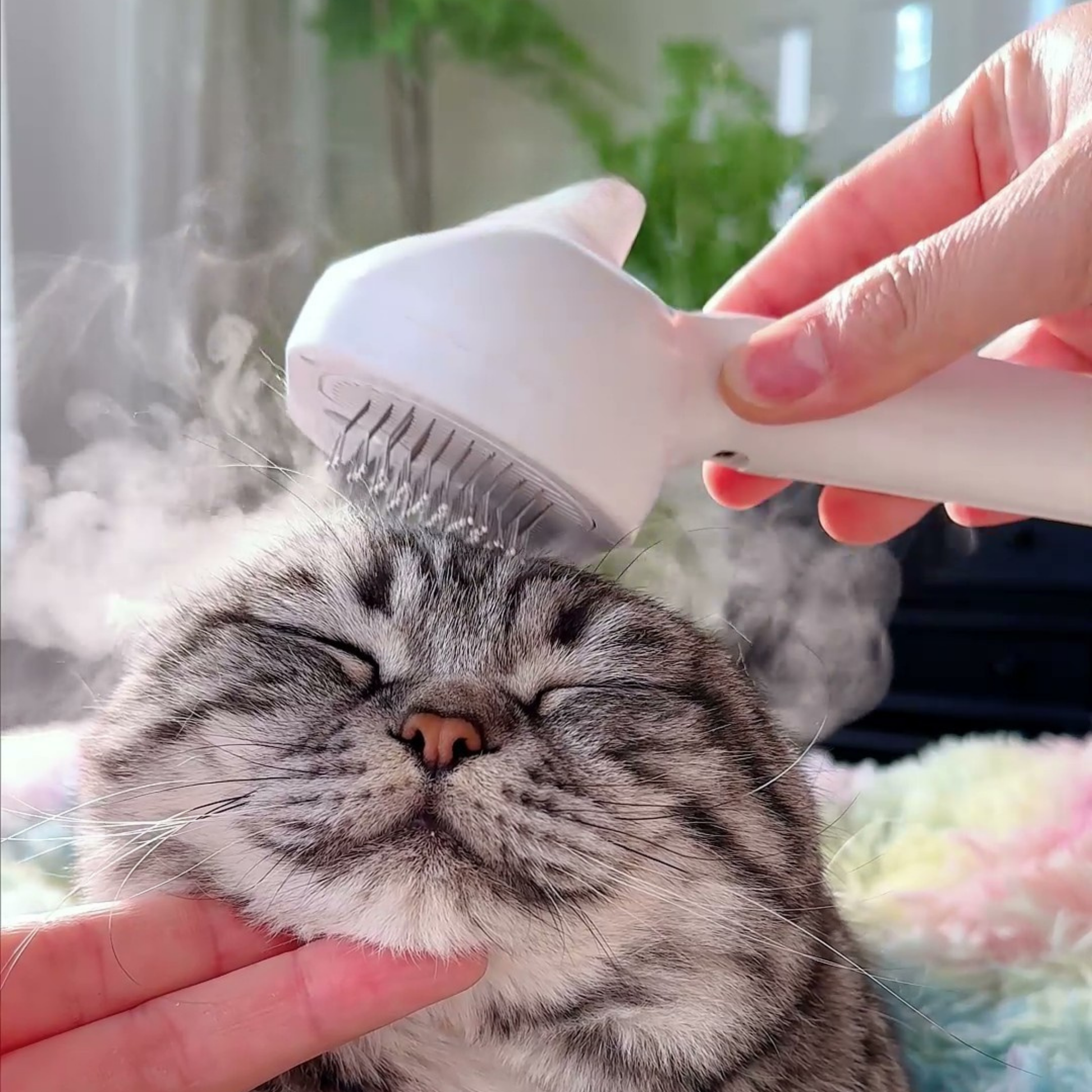 The magic is in the steam — it glides through the fur and adds moisture, therefore helping with mats, flyaways, and loose hair, all without tugging or pulling. The mist is not heated and 100% safe for your kitty. The stainless steel pins of the brush have soft, rounded tips, so every stroke feels like a massage, not a scratch. Your cat stays calm, you stay stress-free, and grooming becomes a moment you both can actually enjoy. Plus, if your cat isn’t a fan of baths, no problem. With regular use, the Chewie Steam Brush helps keep their coat clean, fresh and smelling great.